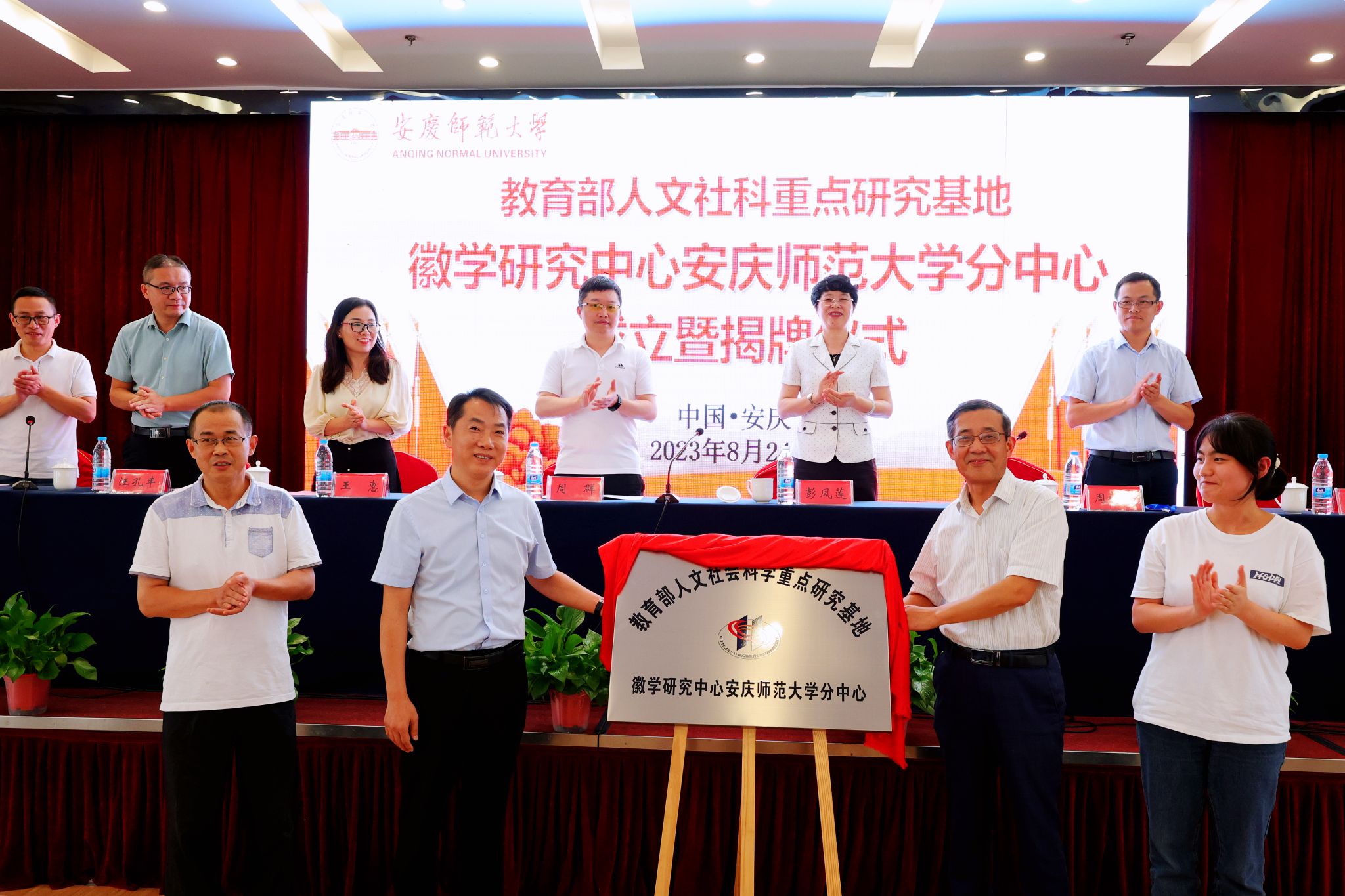 周晓光和张红飞共同为教育部人文社科重点研究基地徽学研究中心beat365英国官网网站分中心揭牌。