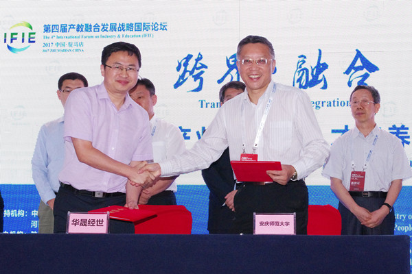 6月23日,校长闵永新应邀出席第四届产教融合发展战略国际论坛,出席23日上午的主论坛并于下午参加分论坛。论坛由教育部、河南省政府支持,教育部学校规划建设发展中心、应用技术大学(学院)联盟主办,驻马店市人民政府、黄淮学院承办。来自7个国家的63位教育机构负责人、大学校长和知名学者、34家国内外知名企业代表、105所国内高校的负责人参加论坛。