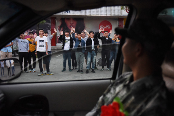 物理与电气工程学院微电子专业2016级的苏政站在新兵队伍里,即将出发的他表示有点“紧张、兴奋”。穿上了军装,戴上了红花,他感触十足:“我以为我是不会哭的那种人,但告别了家人,整装待发的那一刻还是忍不住想哭。”对于参军后的生活,他希望能够增强自己的自控力,让自己得到锻炼,“希望最后能考上军校。”(文/学生记者 蔡贤嘉 图/学生记者 卢俊铭)