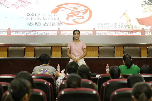 9月18日晚,团市委和校团委在龙山校区联合举行2017年安庆市黄梅戏展演周志愿者招募第二轮面试,40名同学被选出进入培训。