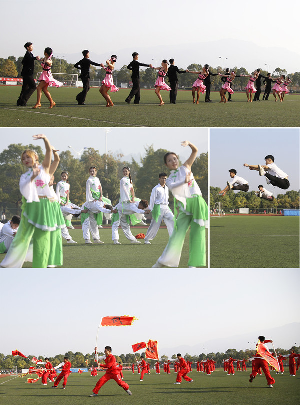 开幕式上表演了精彩的运动类节目,武术、民族舞蹈、健美操、体育舞蹈等节目赢得师生们的阵阵掌声。