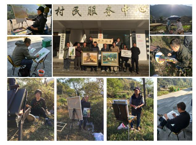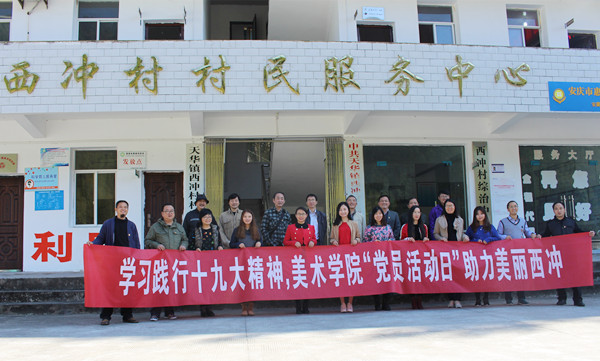 怎样帮助西冲村脱贫,由“输血”变“造血”?经过学院党总支多次实地考察论证,在与挂职干部和西冲村村两委班子充分沟通的基础上,学院积极发挥专业优势,找到了较好地结合点,以特有的方式帮助西冲村开展美丽乡村建设,助力西冲脱贫。学院党总支对西冲村的传统民居、革命旧址、千年罗汉松等社会、文化、自然资源进行了考察,提出进行保护开发的建议方案,初步对西冲村进行了整体文化创意规划,提出了发展红色文化旅游、民俗文化旅游、自然生态旅游等产业经济设想。设计专业教工支部党员围绕道德示范三维立体文化墙墙绘设计、农副产品标志包装设计、文创旅游的标识设计等内容进行了详细考察论证,以加快推进西冲美丽乡村村容村貌建设,提升村民道德文化水平。美术学专业教工支部党员对西冲传统民居、民俗民风、山水景观、动植人物等内容进行考察采风,认为西冲村可以打造为省内外美术专业学生的写生基地,以写生考察带动消费和旅游,从而帮助村集体和村民增加收入,同时,通过写生来进一步对外宣传西冲的好人好山好水好风景。在专业采风中,大家用手中的画笔将美丽的西冲山水民居画入画中,书法老师尹忠俊博士更是手书“美丽西冲”,王经杭、张学衡、徐昌斌、高俊松等老师们分别将自己的绘画作品赠予了西冲村,受到了西冲村两委和村民们的热烈欢迎。此次党日活动内容彰显了学院的党建特点和专业特色,紧密结合了西冲村的实际需要,正如十九大报告所说扶贫更要扶智和扶志。