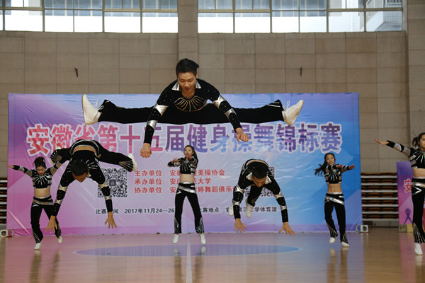 在全民健身操舞比赛中,活力四射的健身操舞、民族风情的蒙古舞、动感十足的街舞表演,都赢得阵阵掌声。在民族舞项目比赛中,合肥理工学校代表队获得高中组特等奖。赛后,教练李伟伟说,每年的健身操舞锦标赛他都会带学生参加,他觉得今年学生们的表现都很优秀,取得的成绩也很好。