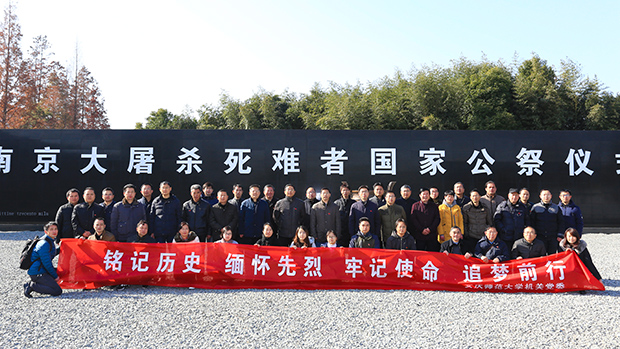 12月17日,机关党委以“铭记历史,缅怀先烈,牢记使命,追梦前行”为主题,组织党员干部前往南京开展学习党章、重温入党誓词、参观雨花台烈士陵园和侵华日军南京大屠杀遇难同胞纪念馆等“五个一”主题党日活动。省政协常委何小祥,校党委委员、副校长汪时珍,机关党委班子成员、副处级以上党员领导干部、各党支部书记,纪检党支部全体党员参加系列活动。