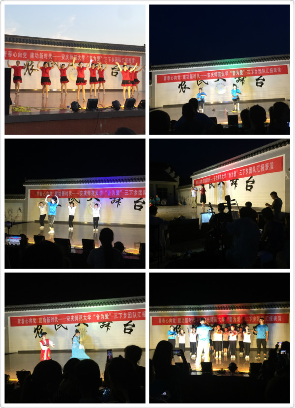 “音”以为荣: 携手社区居民,倾情文艺汇演。为了充分展示教学成果,实践队员在当地政府的支持下带领学生们在当地举办了一场隆重的汇报演出。本场文艺汇演由孩子和实践队员共同参与,并邀请社区居民现场观看。“鸿雁天空上,队队排成行……”实践队员张少举的一首《鸿雁》让淡淡的乡愁如鸿雁一般游荡在天空上;紧接着,孩子们开始倾情演奏他们精心准备的竖笛曲目《茉莉花》,整齐划一的节奏赢得了台下观众的热烈掌声;二胡、陶笛、舞蹈、朗诵,众多节目的演出让观众们赞不绝口,台下气氛热烈;最后,整场汇演在全体师生的合唱《让世界充满爱》中落下帷幕。