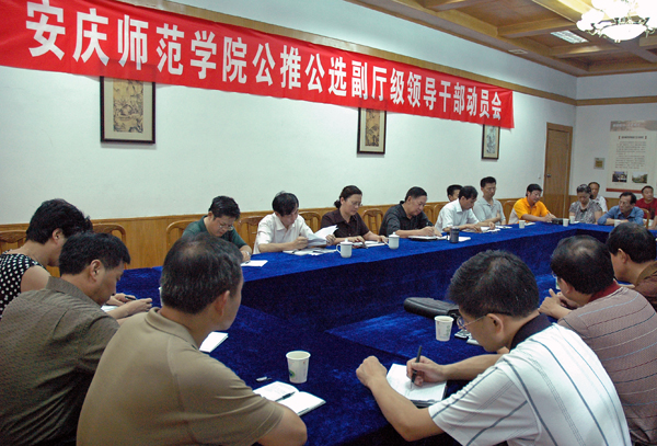 会上,组织部部长陈光明同志传达了省委副书记王明方同志在全省公推公选副厅级领导干部动员会上讲话精神,宣读了省委组织部《关于公推公选副厅级领导干部的通知》(组通字[2008]29号),布置了学校公推公选副厅级领导干部的工作。