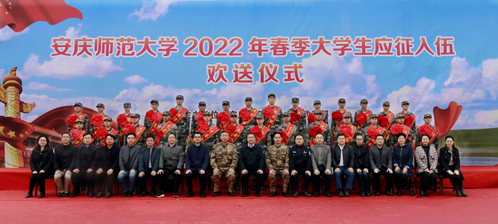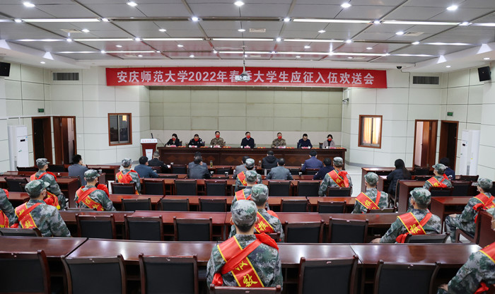3月17日,学校2022年春季大学生应征入伍欢送会在行政楼一楼会议室举行。党委副书记吴照明,安庆市大观区区委常委、人民武装部部长陈洪涛,政委聂竹青出席欢送会。学校人民武装部、教务处、党委保卫部、团委、各二级学院负责人、辅导员代表及春季入伍大学生参加欢送会。