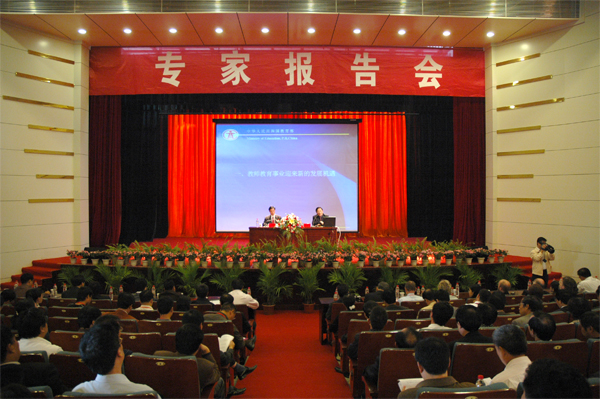 安庆师范学院院长汪青松教授主持报告会。他认为,宋司长的报告高瞻远瞩,视野开阔,指明了师范教育今后改革和发展的方向。他详细阐述了安庆师范学院在教师教育研究方面的探索历程。他说,目前安庆师范学院在探讨教师教育改革与发展方面已形成了两大特色:一是双进工程的实施,二是义务教育、支教与调研结合。他指出,师范教育离开了基础教育就成为无源之水,地方师范院校更应该贴近基层、了解基层,并最终服务基层。(文/程忠良 图/陈广)