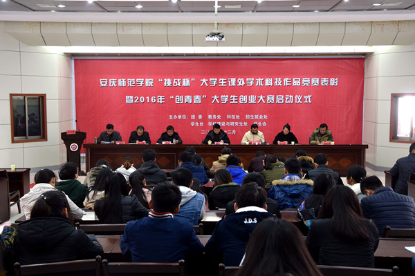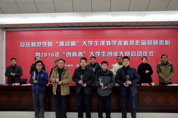 12月30日下午,beat365官网“挑战杯”大学生课外学术科技作品竞赛表彰暨2016年“创青春”大学生创业计大赛启动仪式举行。副校长张群,校党委委员、组织部部长陈光明出席会议。团委、教务处、科研处、学生处、学科建设与研究处、学生会等主办单位负责人以及各学院分管学生工作负责人和获奖师生代表参加了会议。
