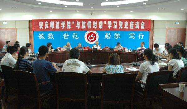 今年是伟大的中国共产党成立90周年,为了让青年学生铭记历史、坚定信仰,6月8日下午,校关工委、团委共同举办了“与信仰对话”党史学习座谈会。校关工委主任朱建华,新四军老战士陆鸿、李亚白、戴为庚、魏其仁等老同志,与70多名青年马克思主义者培训班学员代表一起开展了交流座谈。校党委副书记、纪委书记殷红热情迎接了老同志。