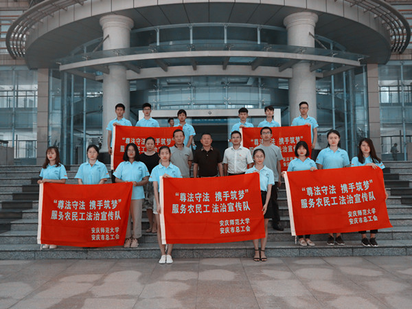 为保障工作顺利开展,在学校领导的高度重视下,校工会和安庆市总工会成立工作领导小组,面向法学、思政教育专业师生招募志愿服务成员,共确定5支志愿服务队。近期,志愿服务队将结合2018年大学生暑期“三下乡”社会实践活动,进园区、进企业、进工地、进乡镇、进街道、进社区等农民工集中的基层和生产一线,通过法律政策宣讲、法律咨询、法律援助、以案说法、视频展播等多种形式,实地开展服务农民工法治宣传活动。(齐济友)