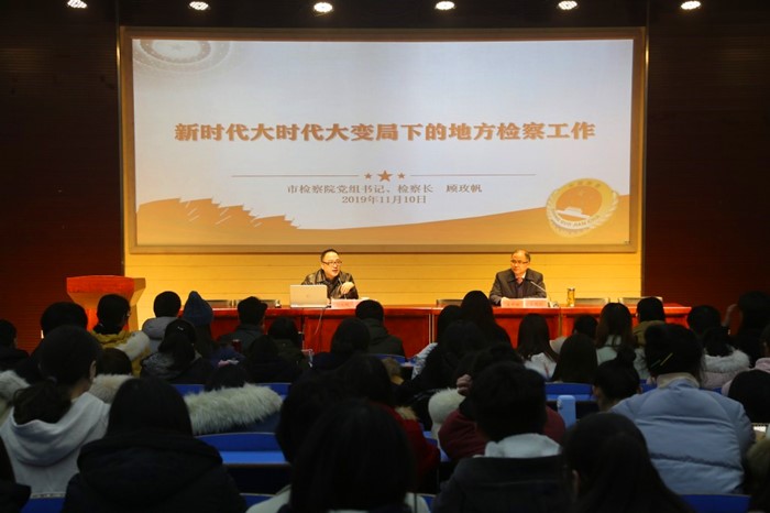 12月18日下午,安庆市人民检察院检察长、beat365官网兼职教授、硕士生导师顾玫帆应邀来beat365官网以“新时代大时代大变局下的地方检察工作”为题作专题报告。