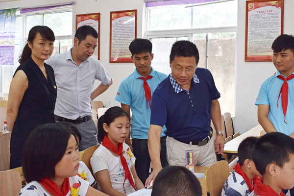 7月26日上午,副校长汪时珍在外国语学院、校团委和团怀宁县委有关负责人的陪同下,来到怀宁县洪铺镇中心学校慰问外国语学院暑期“三下乡”“青鸟”实践团队的师生,并给“三下乡”志愿者送去慰问品。
