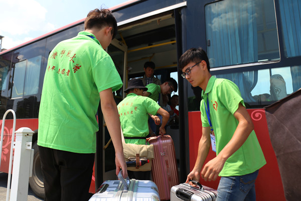清晨5点20分,一辆满载志愿者的公交车从学校出发,开往火车站,迎接到站的第一批新生。从出站口到集合平台,一路上整齐地站着身着绿色衣服的志愿者,为新生们提供一条龙式的引导服务,让新生们感受到“回家”的温暖。