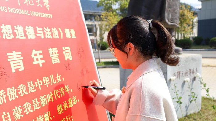 “我骄傲我是中华儿女,我自豪我是新时代青年……”在宣誓后,班级全体学生在雕像旁的《青年誓词》誓词板上签下了自己的姓名。“无论我们来自哪里,叫什么名字,我们站在这里,身为稼先班的一员,我们就是‘稼先青年’。”该班的梁志超表示,在誓词板上“有了姓名”,也意味着在祖国未来的事业建设中也要“有姓有名”,将稼先精神不断发扬光大。