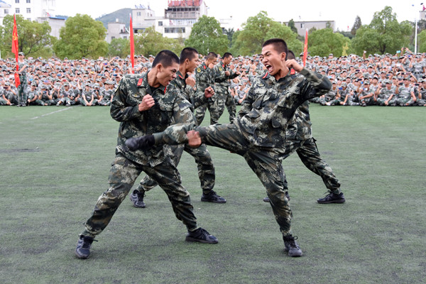 2018级新生迈着整齐的步伐,以矫健的身姿、嘹亮的口号依次走过主席台,展示他们近两周来在骄阳下战斗、在细雨中拼搏,刻苦训练的成果,接受校领导与全体师生的检阅。武警教官进行了精彩表演,为同学们展现最规范的队列队形,展示了格斗、擒拿的技巧动作,用实际行动诠释铁一般信仰、铁一般信念、铁一般纪律、铁一般担当的新时代军人风范,全场爆发出雷鸣般的掌声。