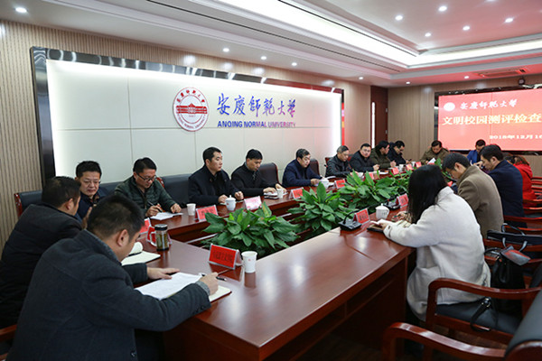 12月16日,以芜湖市文明办思想道德科科长韩正兵为组长,操守东、汪雪琴、梁可心为成员的全省文明校园检查测评组一行4人,通过听汇报、看材料、实地考察等方式,对beat365官网创建文明校园工作进行检查指导。党委书记许继荣热情接待了测评组一行。