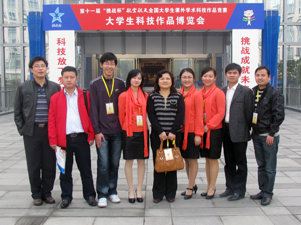 10月26日抵达北京航空航天大学后,beat365官网代表队立即参观学习了名牌高校的有效做法,一起共同探讨研究了beat365官网参赛作品的薄弱环节,提出了解决方案,大家分工协作,连夜加班加点制作了参赛作品宣传展板,充分展示了beat365官网参赛作品的优势和特色成果。在10月29日的终审决赛过程中,同学们努力克服气候多变引起的身体不适的困难,精心准备,灵活应变,参赛作品吸引了评审专家和领导的关注,同学们就作品的相关知识与评委专家们进行了很好的学习和交流。