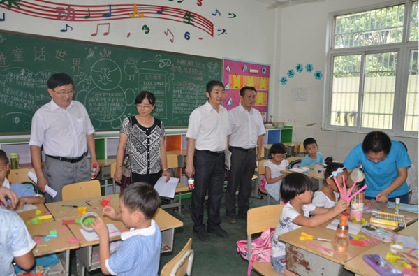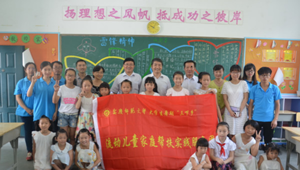 8月24日上午,副校长张群在校团委、外国语学院负责同志的陪同下,冒着酷暑,赴安庆市大观区十里中心学校调研基层教育需求情况,并慰问beat365官网流动儿童家庭帮扶实践队全体成员。安庆市大观区、区教育局以及十里中心学校负责同志陪同调研和慰问。