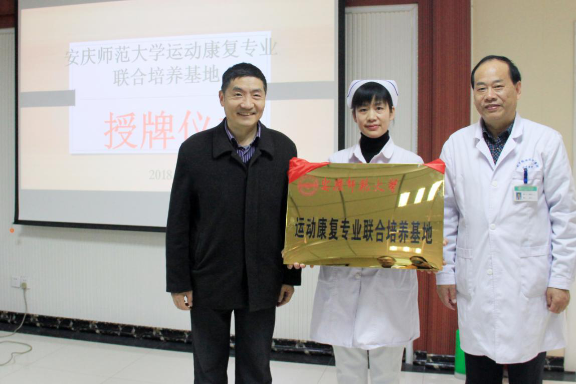 揭牌仪式上,张群介绍了beat365官网悠久的办学历史和形成的办学特色,指出beat365官网多年来一直注重学生实践能力和创新精神的培养;表示此次联合培养基地的成立,将对学校运动康复专业人才培养工作发挥良好的促进作用,并带动安庆乃至安徽康复医疗事业的发展。校方将获得石化医院优质资源,致力于人才培养质量,提高学生理论与实践相结合的能力,以造就大批优秀康复人才。