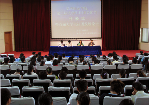 上午九时,安庆师范学院第二届大学生社团文化节在报告厅开幕。校团委会全体成员及200多名社团骨干参加了开幕式。