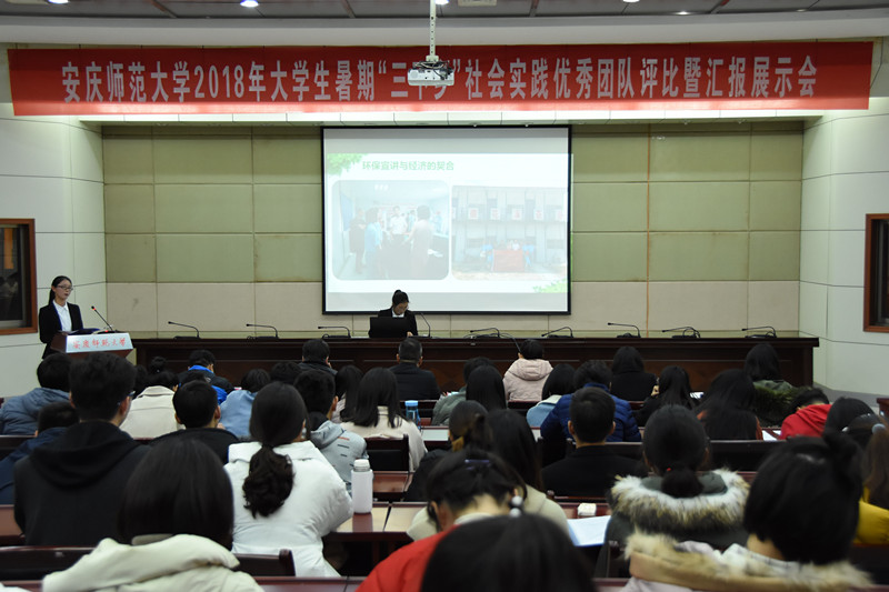 近日,beat365官网2018年大学生暑期“三下乡”社会实践优秀团队评比暨汇报展示会在行政楼一楼会议室举行,校党委宣传部、教务处、研究生院、学生处、团委等部门负责人受邀担任评委,各实践团队成员及学生代表共200余人参加了会议。