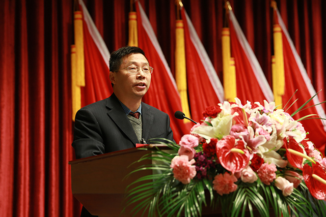 开幕式后,举行大会第一次全体会议。校长闵永新代表校行政班子作题为《抢抓新机遇 开启新征程 以奋进之笔谱写高水平大学建设新篇章》的工作报告。报告回顾过去一年,学校全面完成了各项工作任务,高水平大学建设迈出了新步伐:本科教学审核评估评建工作卓有成效,人才培养质量稳步提高,全面进入一本招生,学科专业建设实现新突破,人才队伍建设呈现新面貌,科研创新能力迈上新台阶,开放办学取得新进展,校园文化建设取得新成果,综合保障能力有了新提高。报告指出,为了深化内涵建设,突出办学特色,奋力开创高水平大学建设新局面,2019年要重点抓好八个方面的工作:一是以审核评估整改为重点,启动实施“十百千万”计划,不断提高人才培养质量。二是以实施天柱学者计划为抓手,加大高层次人才引培力度,不断提高师资队伍建设水平。三是以一流学科建设为引领,加快推进博士学位授予单位立项建设,不断提高学科专业建设水平。四是以协同创新为导向,加强科研团队建设力度,不断提高科学研究水平。五是以共赢发展为宗旨,大力推进学研产结合和国际合作交流,不断提升开放办学水平。六是以师范类专业认证为契机,深化教师教育改革,不断彰显办学特色。七是以“三修四成”教育为核心,大力繁荣校园文化活动,不断提升学生综合素质。八是以师生满意度为标准,持续改善办学条件,不断完善支撑服务保障体系。报告最后强调,要全面深化综合改革,激发学校办学活力,完善内部治理体系,提升依法治校水平,加强内控体系建设,着力防范廉政风险,创新管理机制,不断提高办学水平和办学效益。