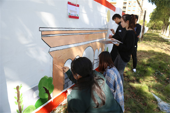 美术学院的另一项特色品牌活动——墙体彩绘实践活动秉承“服务社会、奉献社会”的宗旨,将专业与实践相结合,通过精心编排、制作人民喜闻乐见、贴近生活的墙绘内容,以较为新颖的宣传方式传承中华文明、树立时代新风,在服务地方建设、美化生活环境、政策宣传和文化教育等方面都发挥了积极作用。七年来,先后为五横乡杨亭村、大龙山镇燎原社区、十里乡中心学校、大观区山口乡、宜秀区永安社区、望江县凉泉中心学校、太湖县富山小学、安庆市起点特殊教育学校等义务绘制“美好乡村”、“美丽校园”主题墙绘达8000平米。培养了大学生积极奉献的精神和服务社会的意识,提高了学生的专业实践能力和团队合作意识,提升了学生的综合素养。画墙绘是也美术学院学生发挥专业特长、表达爱校感情的一种方式,10月20日至28日,美术学院的665名学生分批在学校西围墙上进行墙绘,为学校打造了一道靓丽的风景线,引得在校学生们纷纷拍照留念。(易惠)