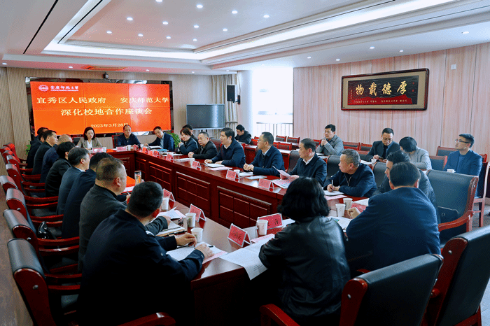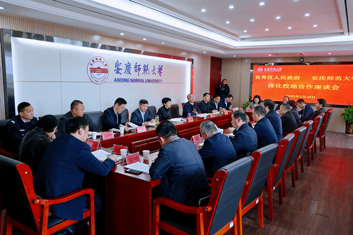 校办公室、教务处、科研处、安全管理处、社会合作交流处、基建与后勤管理处、教师教育学院及宜秀区有关部门负责人参加座谈会。(撰稿:张军 摄影:范龙超 编辑:江伟 审核:张支南 陈秀)