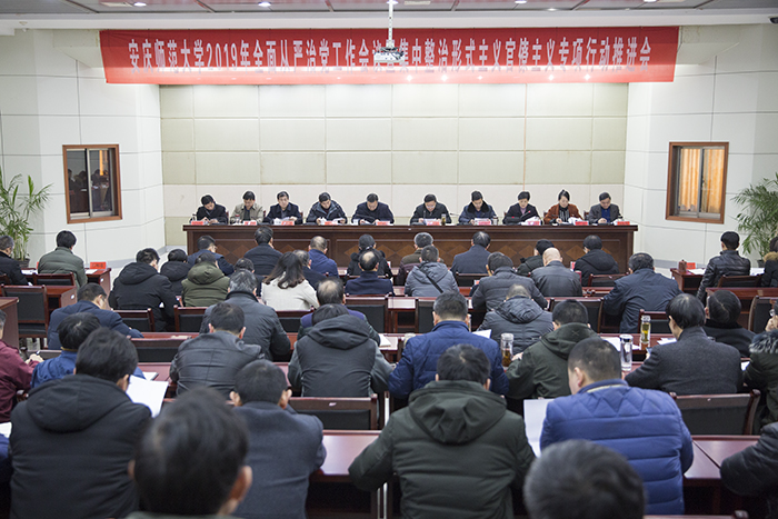 校党委书记许继荣发表讲话,他强调,要以习近平新时代中国特色社会主义思想和党的十九大精神为指导,深入学习贯彻十九届中央纪委三次全会、省纪委十届四次全会精神,树牢“四个意识”,坚定“四个自信”,坚决做到“两个维护”,发扬斗争精神,勇于自我革命,坚定不移把全面从严治党向纵深推进。一要以政治建设为统领全面推进党的建设。持续强化理论武装,坚守初心使命;严明党的政治纪律和政治规矩,推动党中央、省委重大决策部署在学校落地见效;严格落实中央八项规定精神,坚持不懈反对和纠正“四风”;加强日常监督管理,真正把党内监督体现在时时事事处处;深化标本兼治,一体推进不敢腐、不能腐、不想腐。二要力戒形式主义官僚主义。扎实开展“严规矩、强监督、转作风”专项行动,聚焦“十戒十做”,聚焦“四对标四整治”,着重解决责任心缺失、敷衍塞责、工作不实等形式主义问题,着重解决在师生员工利益上不维护、不作为等官僚主义问题,使求真务实、真抓实干蔚然成风。三要强化管党治党责任担当。坚持真管真严、敢管敢严、长管长严,坚持管人、管事、治党相结合,不忘初心,砥砺前行,奋力开创全面从严治党和党风廉政建设新局面,积极营造风清气正的政治生态和育人环境。