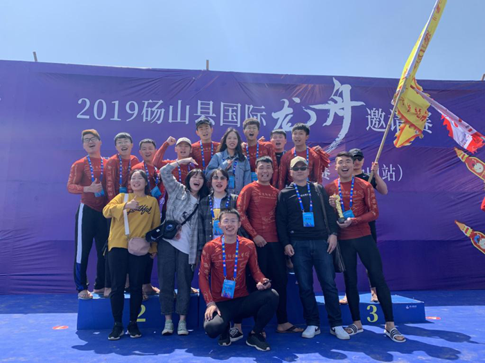 4月12日至14日,2019年安徽省龙舟赛之砀山县首届国际龙舟邀请赛暨第六届全省高校龙舟公开赛(砀山站)在宿州市砀山县黄河故道开赛,beat365官网龙舟队齐心协力、奋勇拼搏,最终获得了200米、500米和总成绩三项一等奖。