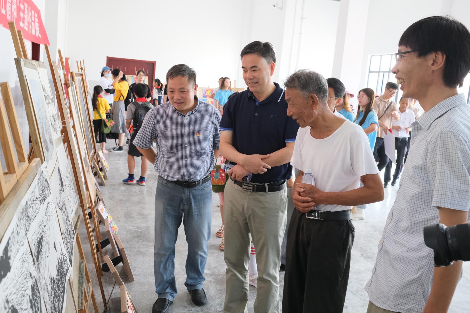 在望江县,吴照明拜访看望了渡江战役英雄董玉发,向他赠送慰问品以及“画说党史 传承渡江精神”暑期社会实践团成员亲手创作的剪纸作品;参观了漳湖镇渡江战役纪念馆,代表学校向纪念馆捐赠了三幅由学生创作的、以渡江战役为主题的美术作品。在宿松县,吴照明为“大学生社会实践基地”揭牌,观看了“童心向党,乡村逐梦”暑期社会实践团结营仪式及成果展,为优秀小学员颁发证书。(撰稿:陈灿 方蓬 摄影:陈灿 审核:陈东 陈秀)