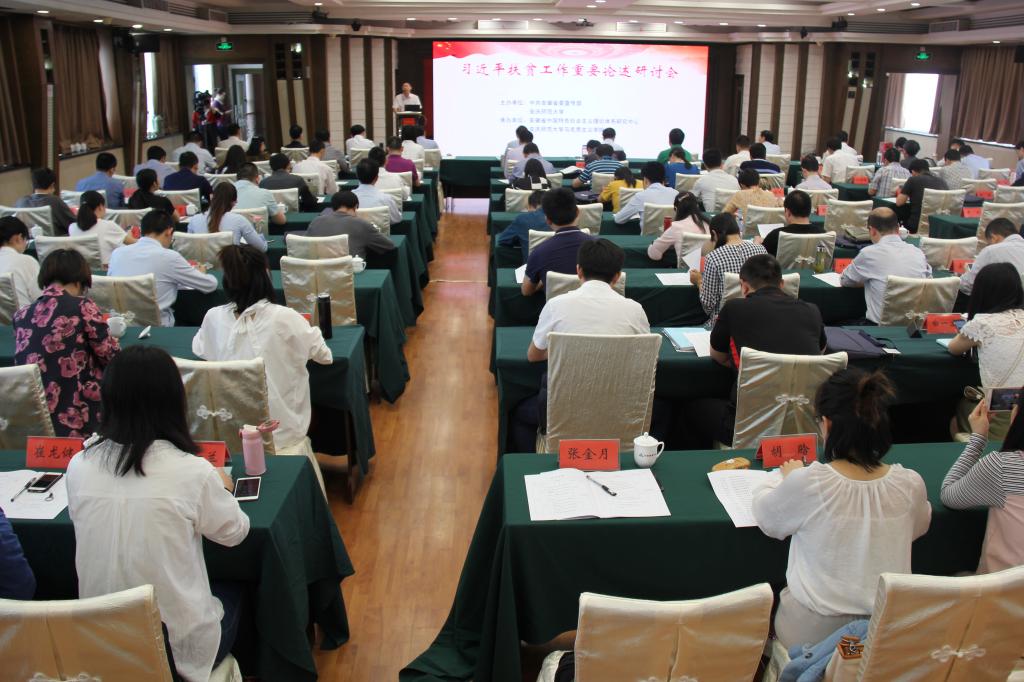 5月18日,由中共安徽省委宣传部和beat365英国官网网站联合主办,安徽省中国特色社会主义理论体系研究中心和beat365官网马克思主义学院承办的“习近平扶贫工作重要论述”研讨会在安庆召开。来自省内外高校、省直机关、科研院所近百位专家学者以及beat365官网马克思主义学院教师和研究生参加了会议。省委宣传部部务会成员、省委讲师团团长李兵,党委常委、副校长汪时珍出席会议。上海财经大学马克思主义学院博士生导师汪青松教授作主旨报告。