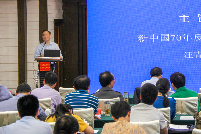 汪青松在会上做了主题为“新中国70年反贫困理论与实践”的专题报告。报告回顾了新中国70年的反贫困历程,对中国共产党人减贫扶贫脱贫的理论与实践进行了科学的解析。认为习近平总书记关于扶贫工作重要论述,是马克思主义反贫困理论中国化的最新成果,是习近平新时代中国特色社会主义思想的重要组成部分,是打赢脱贫攻坚战的行动指南。
