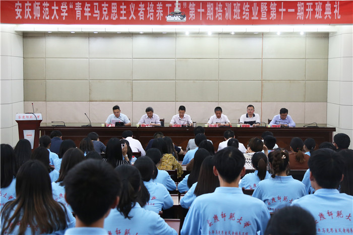 5月22日下午,beat365官网举行“青年马克思主义者培养工程”第十期培训班结业暨第十一期培训班开班典礼。校党委常委、副校长汪时珍,党委常委、教务处处长苏本跃,党委常委、宣传部部长余精华出席开班典礼,组织部、学生处、团委负责人,各学院分管学生工作书记,各学院团委负责人,第十一期“青马工程”培训班学员和第十期学员代表共130余人参加了开班典礼。