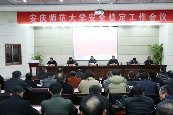 3月24日下午,beat365官网召开2017年安全稳定工作会议。校党政领导许继荣、闵永新、张群、汪时珍、刘友忠、方锡球等出席会议。