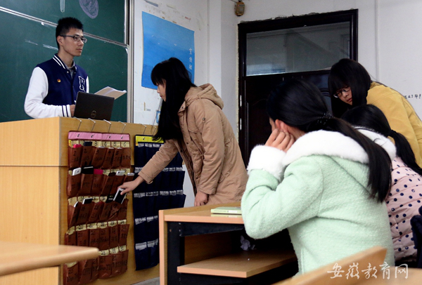 学院在全校范围内首先提出了“绿色课堂”的理念,大力推行“拒绝手机、从我做起”,在课堂上对手机说“不”。各班级团支部订制了“手机袋”,上课时间全体同学的手机全部放入,拒绝课上“低头一族“,要求”头抬起来、腰直起来、坐到教室前面来”,得到了老师和同学们的一致欢迎。自投入使用以来,各班级积极配合、认真执行,有效提升了学生课上学习质量,帮助学院营造了良好的班风、学风。在数学与计算科学学院,无论是上课、晚自习,还是考试,你都能看见手机整整齐齐地插在手机袋里,挂在讲台上,这已经成为一道别样的风景。