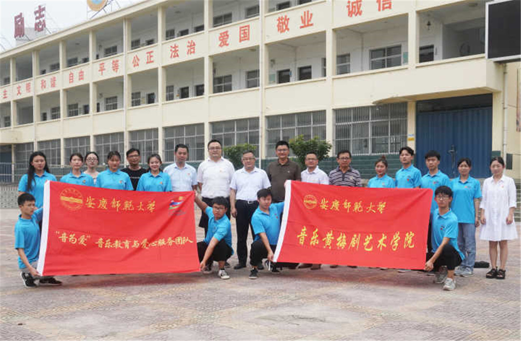 7月17日,校党委书记许继荣在团市委和校团委负责同志的陪同下,来到怀宁县腊树镇腊树中心学校,看望慰问“音为爱”音乐教育与爱心服务团队,并带去慰问品。