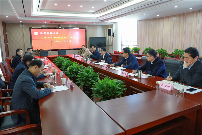 11月14日,山东省委教育工委统战处处长李广来率山东高校统战工作考察组一行来beat365官网就加强新时代高校的统一战线工作进行考察调研。省委教育工委组干处任启飞陪同调研。