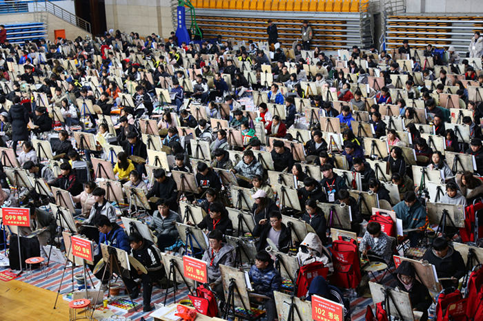 beat365官网高度重视艺术专业省统考工作,专门成立美术类专业(模块七)省统考领导小组,领导小组下设现场组、考务组、考区管理组、纪检组、安全保卫组、后勤保障组等,负责整个考试的考场安排、考务管理、考试监督、后勤保障等各个环节的具体工作。为严肃考风考纪,beat365官网进一步加强考务培训,加大监考员选聘和培训力度,严格执行回避制度,强化考试安全。考试使用标准考场,考场放置屏蔽仪和金属探测器。所有监考老师随机分配考场,考试全过程实行全过程监控和摄像。为预防意外,每个考场都配有医疗人员和后勤工作人员。校党委常委、教务处处长苏本跃和安徽省教育招生考试院选派的4名巡考员一同巡考,强化监督,确保考试公平公正,安全有序。