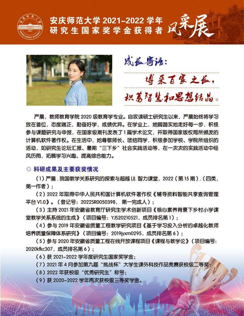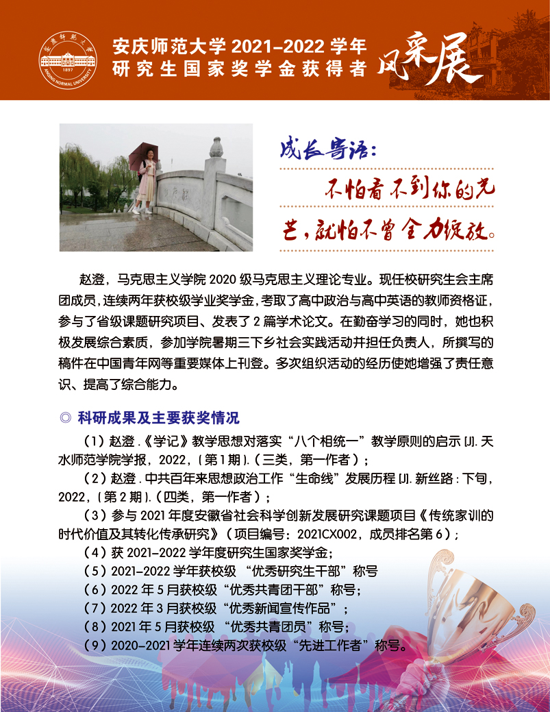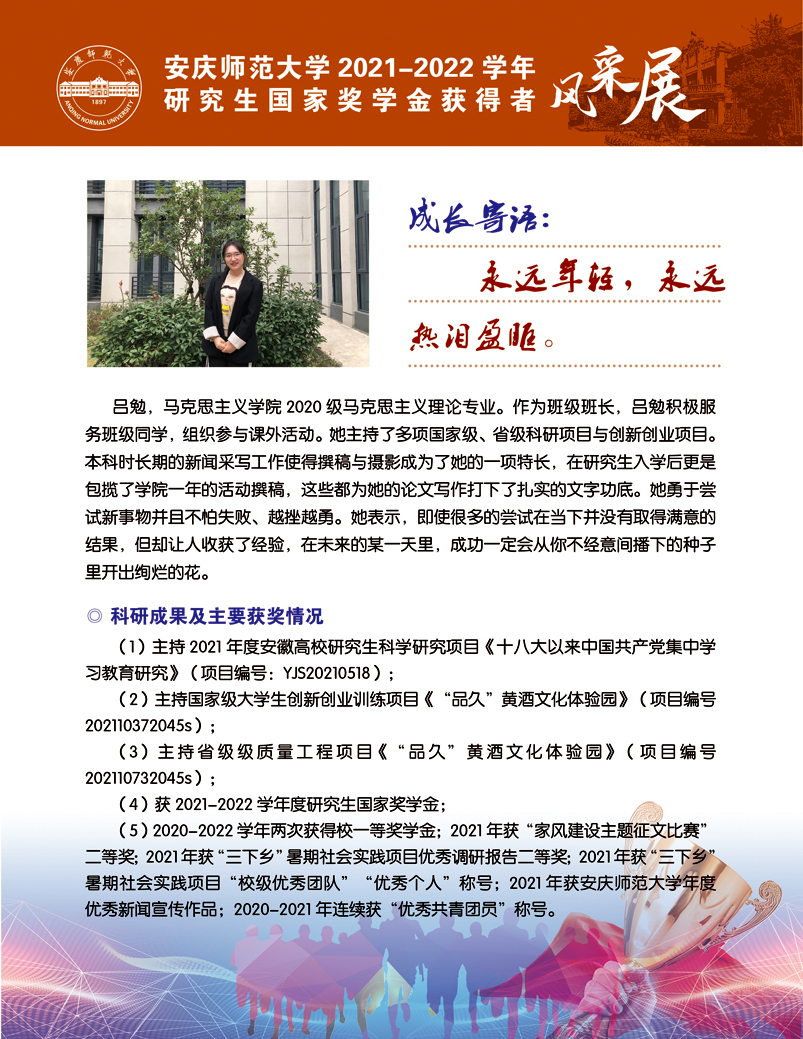 编者按:中国共产党beat365英国官网网站第二次党员代表大会即将召开,这是学校在推进高水平大学建设新征程中召开的一次重要会议。学校第二次党代会肩负着统一思想、凝心聚力、统筹规划、引领发展的重要使命,既要全面总结过去五年来学校党的建设和事业发展取得的好成绩、形成的好经验,也要认真研判新形势、应对新挑战,为学校新阶段实现高质量发展锚定方向、擘画蓝图。为迎接学校第二次党代会的召开,学校特推出【砥砺奋进的五年∙学生风采】系列报道,接续2018年以来【国奖风采录】专栏报道,集中展现beat365官网青年学子昂扬向上、奋发有为的青春风貌,激励与启迪广大青年立志做有理想、敢担当、能吃苦、肯奋斗的新时代好青年,让青春在全面建设社会主义现代化国家的火热实践中绽放绚丽之花。