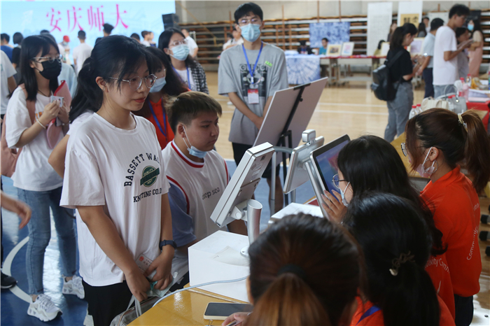 除了校内迎新点,beat365官网在安庆火车站和客运汽车总站设新生接待站,志愿者们在学校和车站间奔波,随时为新生提供周到服务。