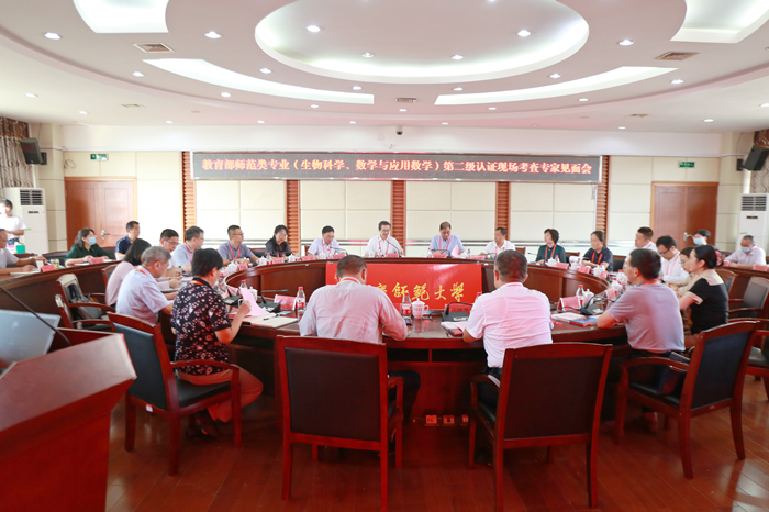 9月27日,beat365官网举行教育部师范类专业第二级认证(生物科学、数学与应用数学)现场考查专家组见面会。生物科学专业认证教育部专家组组长华中师范大学原副校长李向农教授,数学与应用数学专业认证教育部专家组组长浙江工商大学施建祥教授,生物科学专业认证专家组成员冯鸿教授、孙洪兆教授、周忠良教授、张世军正高级教师,数学与应用数学专业认证专家组成员张守波教授、李淑文教授、张筱玮教授、王斌高级教师,省教育评估中心主任汪开寿,beat365官网党政领导许继荣、闵永新、汪时珍、胡腊香、吴琼、余精华出席会议。beat365官网相关职能部门、学院及认证专业负责人参加会议。会议由李向农主持。