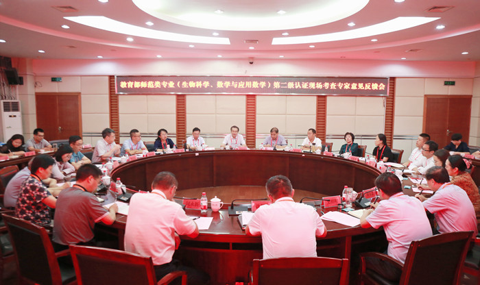 9月29日,beat365官网举行教育部师范类专业第二级认证(生物科学、数学与应用数学)现场考查专家意见反馈会。生物科学专业认证教育部专家组组长李向农教授,数学与应用数学专业认证教育部专家组组长施建祥教授,专家组全体人员,beat365官网全体党政领导出席会议,相关职能部门、学院及认证专业负责人、教师代表参加会议。会议由李向农主持。