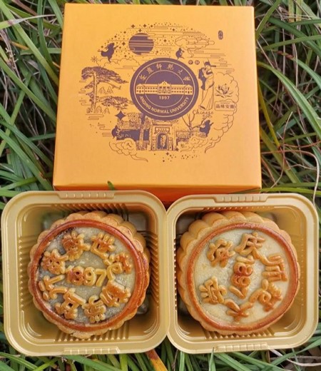 这些设计元素的融入,透露出浓浓的安庆师大味道。“月饼盒的橙色代表着学校对全体学生满满的佳节诚意,也是对学生成长成才的期望。”此次月饼的设计和采购工作由学校学生处负责。学生处负责人介绍道,“诗句的选择上考虑到体现学校大家庭的氛围。而月饼和包装上徽文化、皖江文化、安庆文化和校园文化元素的结合,也是让学生们在家国情怀中体验和感受中国传统文化,感受到学校对学生的爱护。”