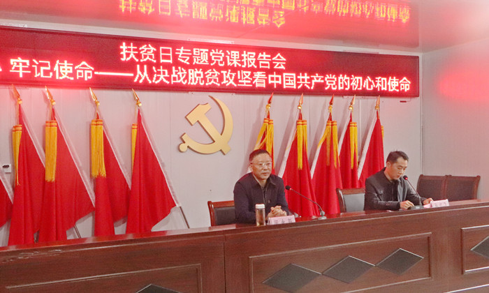 10月15日,在第7个国家扶贫日、第28个“国际消除贫困日”来临之际,校长闵永新赴beat365官网定点帮扶单位太湖县天华镇西冲村,为定点帮扶村党员群众送去题为《不忘初心 牢记使命——从决战脱贫攻坚看中国共产党的初心和使命》的专题党课报告。