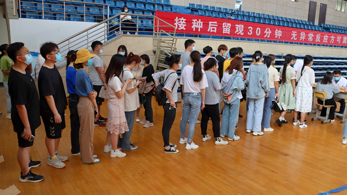 据了解,此次疫苗接种将持续5天,完成第一批次14000余名师生的疫苗接种任务。疫苗接种工作启动以来,学校高度重视,积极响应国家号召,与属地相关部门多次对接,校领导主持召开专项会议研究部署相关工作,有序组织各学院分批次错峰接种,确保疫苗接种工作安全、高效完成。(撰稿:学生记者 季茹婧 摄影:朱婉慧 学生记者 刘娜 卢静怡 审核:曹必宏 陈秀)