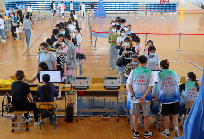临时接种点设在龙山校区体育馆篮球馆内,现场设置了等候区、问诊区、登记区、接种区、留观区和应急处置区等6个工作区。师生们分时段﹑分批次陆续进入接种点,根据指引进行接种。
