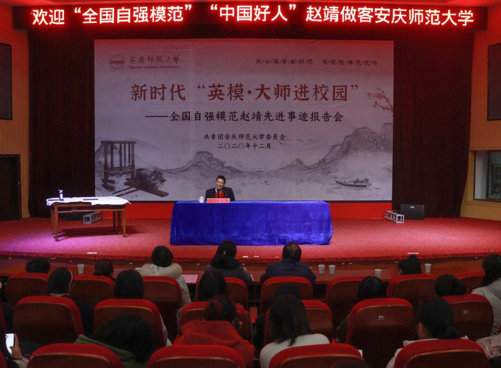“赵靖老师是安徽人,是我们身边的榜样,他身上这种自强不息、奋发有为的精神正是我们想传递给青年学生的,希望通过先进典型模范的励志故事弘扬自强最伟大、奋斗最美丽的社会风尚。”校团委负责人表示。