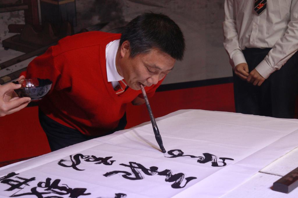 马克思主义学院金文斌教授主持报告会。他对赵靖老师的先进事迹表示钦佩,对他的书法技艺赞不绝口。他指出,赵靖老师励志成才的故事生动诠释了身残志坚、坚持不懈的精神;人生经历生动阐释了“光荣属于劳动者,幸福属于自强不息者”的内涵;现场创作笔力遒劲、功底深厚,又是一堂精彩的书法课;报告会展示了全国自强模范、中国好人的大爱情怀,对青年大学生是一次精神上的洗礼。